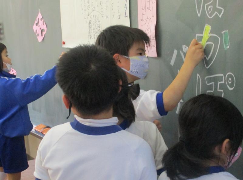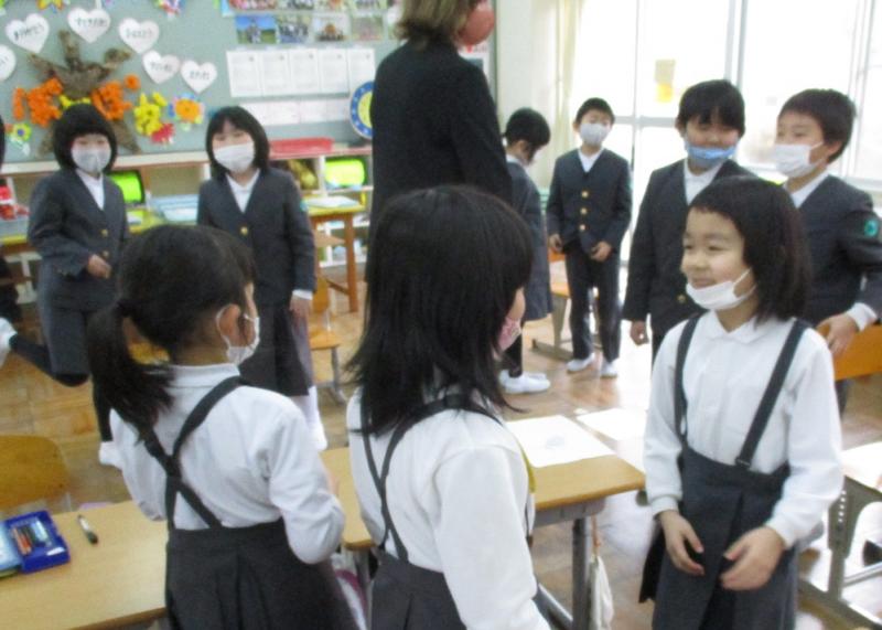 いよいよ弥生、3月。あと少しがんばっていきましょう。 今日は、世界にちなんだことでお伝えします。 1・2年生、外国語活動でゲームを通して英語を楽しんでいました。 |