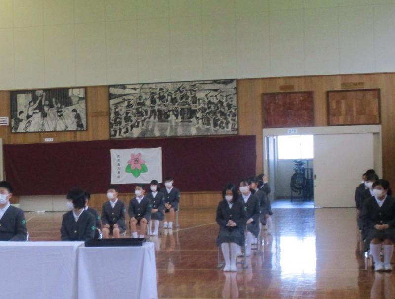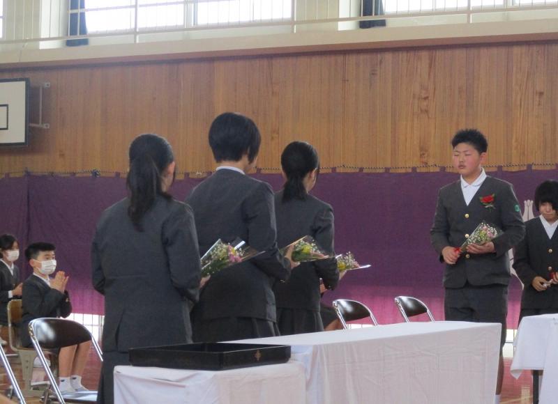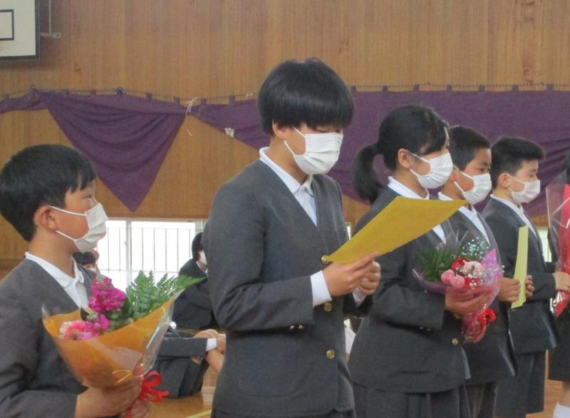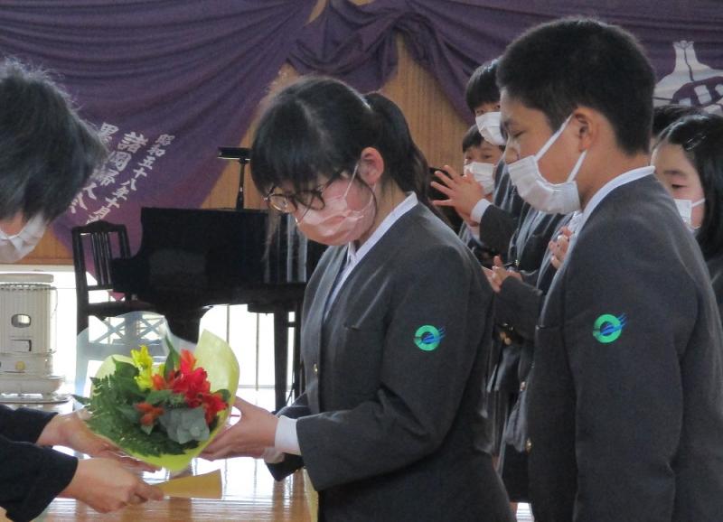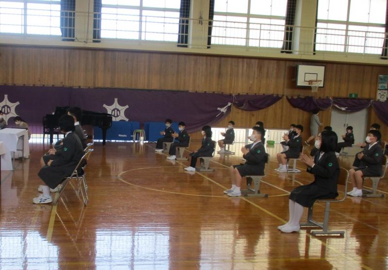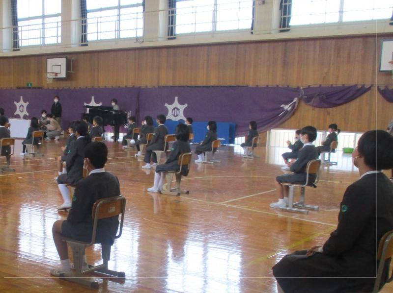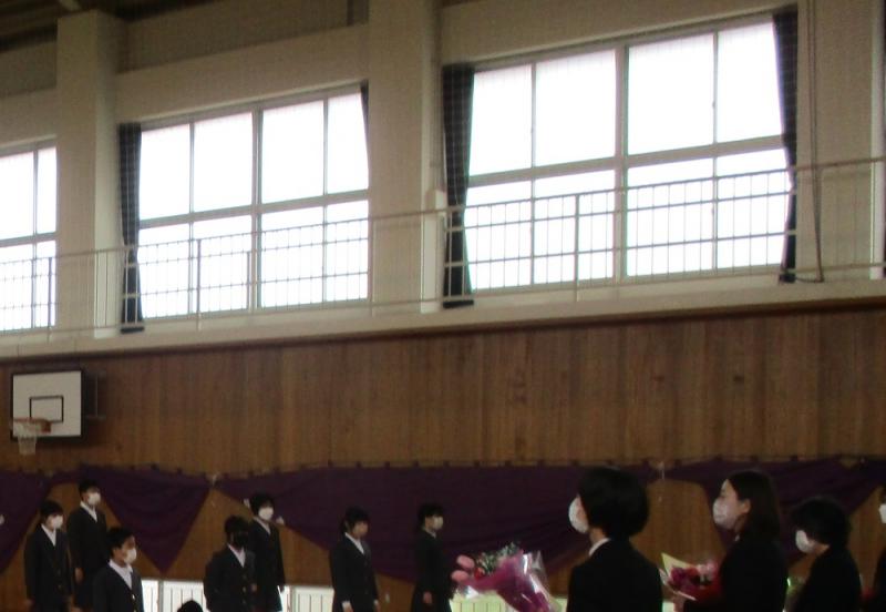 | 5限の離任式は、卒業生も来てくれて、みんなの心が通い合う場となりました。 | |