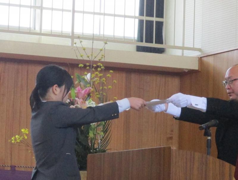 | やわらかな光の中で、卒業証書授与式を挙行しました。 | |