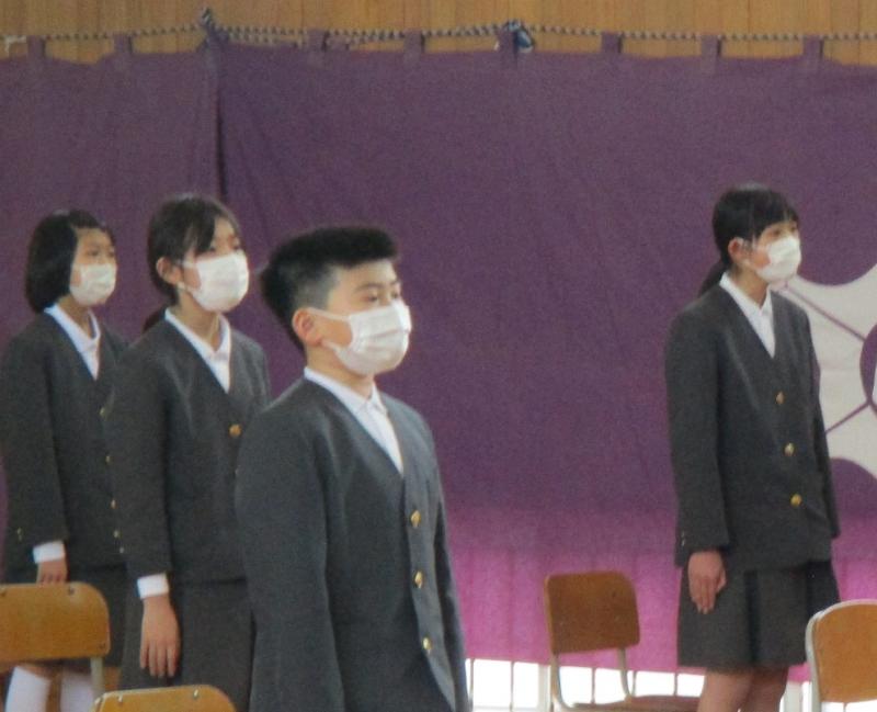| 4限に修了式を行いました。それぞれ、該当の学年の教育課程を修了し、進級します。凛々しい表情でした。 | |