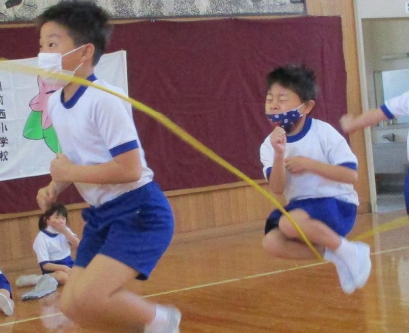 今年度も県のスポチャレに取り組んできました。八の字跳びを含め、各種目で好成績を残しました。今年度、最後の縄跳びでした。 |