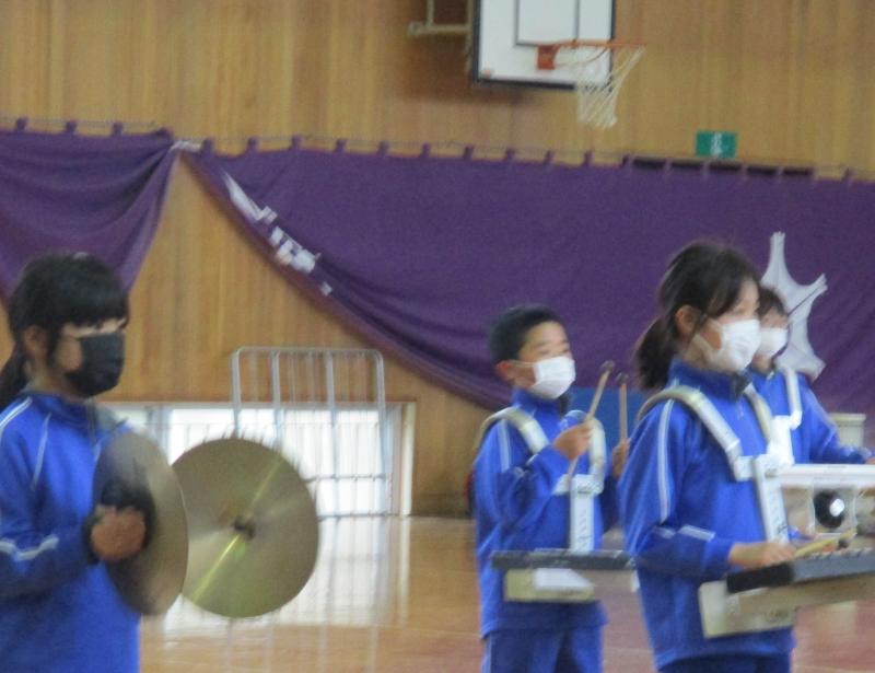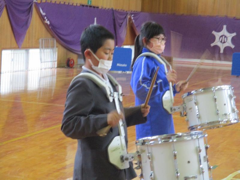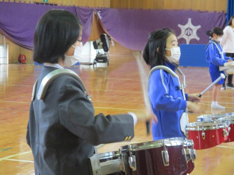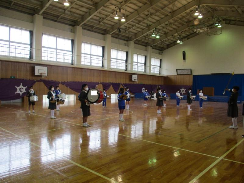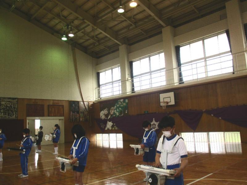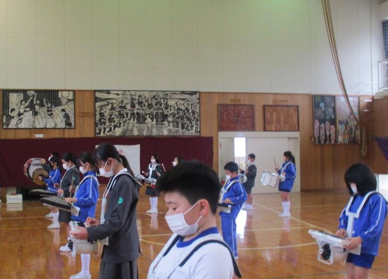 | 3~5年生の鼓笛練習がありました。パートごとの練習から今日初めて合わせました。いい感じです。 | |