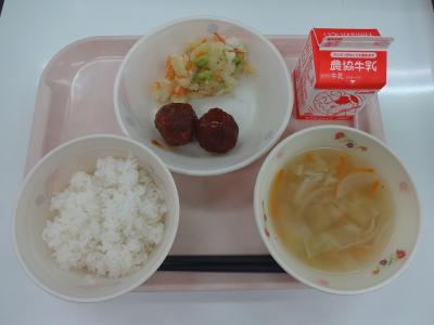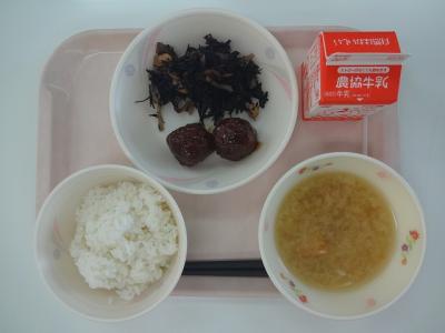 ~ごはん、肉団子、ひじきの炒め煮、みそ汁、牛乳~
