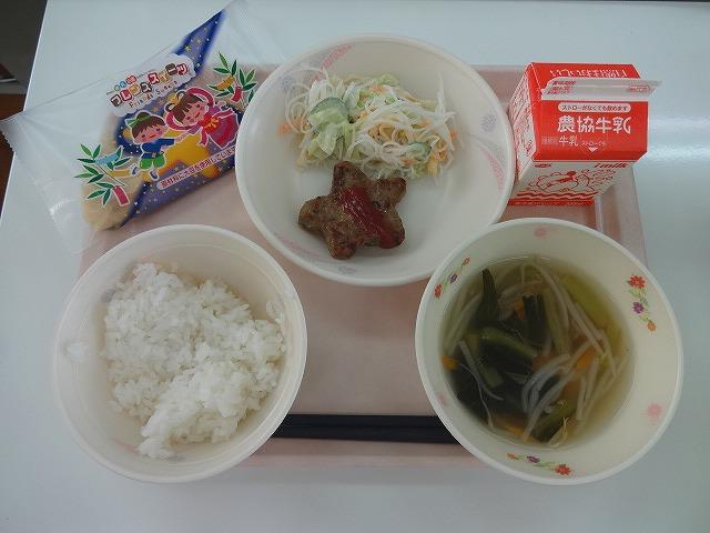 ~ごはん、星のハンバーグ、春雨サラダ、野菜スープ、七夕ゼリー、牛乳~