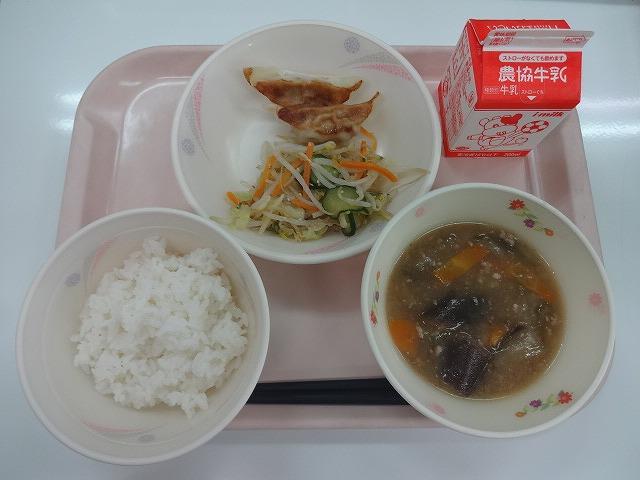 ~ごはん、焼きギョウザ、中華サラダ、マーボーなす、牛乳~
