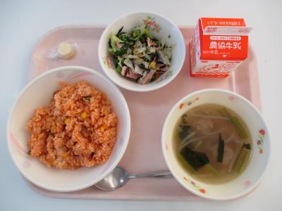 ~ピラフ、白菜とりんごのサラダ、豆乳スープ、牛乳~
