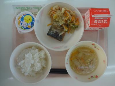 ~ごはん、ブリの西京焼き、ひじきの炒め煮、みそ汁、牛乳、ヨーグルト~