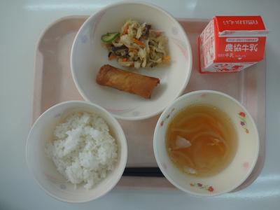 ~ごはん、春巻き、切干大根の中華サラダ、じゃがいものスープ、牛乳~