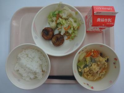 ~ひじきごはん、肉団子のケチャップあん、マカロニサラダ、白菜のみそ汁、牛乳~