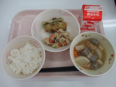 ~ごはん、ちくわの磯辺揚げ、うの花、炊き合わせ、牛乳~