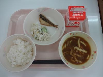 ~ごはん、石川県産はたはた唐揚げ、かみかみ和え、カレーうどん汁、牛乳~