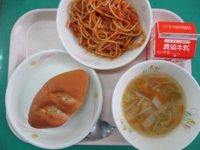 ~ミルクロール(減)、スパゲッティナポリタン、野菜スープ、牛乳~