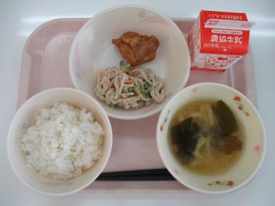 ~ごはん、チキンカツ、春雨のサラダ、じゃがいものみそ汁、牛乳~