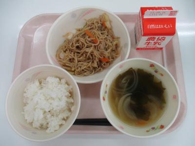 ~米粉パン(減)、焼きそば、わかえとえのきのスープ、牛乳~