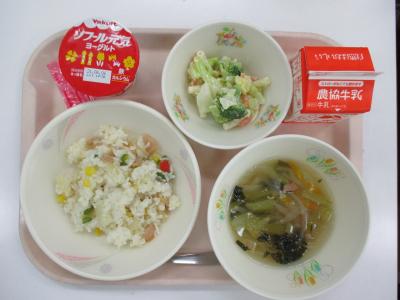 ~ピラフ、マカロニサラダ、オニオンスープ、牛乳、ヨーグルト~
