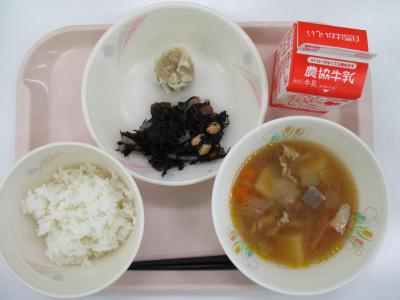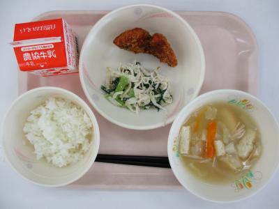 ~ごはん、鶏のからあげ、切干大根のごま酢あえ、厚揚げのみそ汁、牛乳~