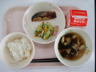~ごはん、さばの塩焼き、ひじきの炒め煮、めった汁、牛乳~