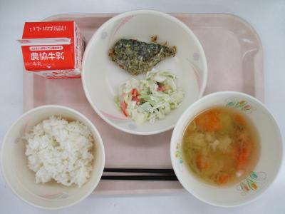 ~ごはん、あじ切り身フライ、切干大根のサラダ、みそ汁、牛乳~