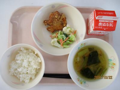 ~ごはん、鶏のからあげ、ブロッコリーサラダ、みそ汁、牛乳~