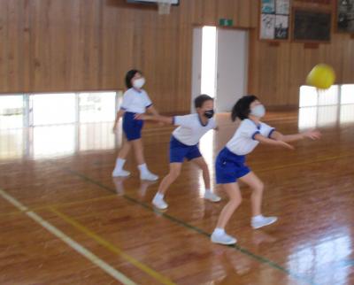 全校、長休みに取り組んでいるスポチャレ。記録までもう少し。多い子で、ワンセット、40回以上ボールを投げています。 |