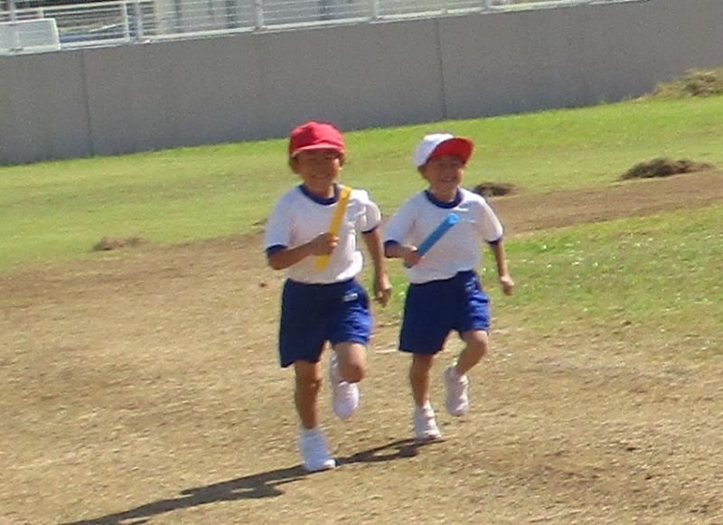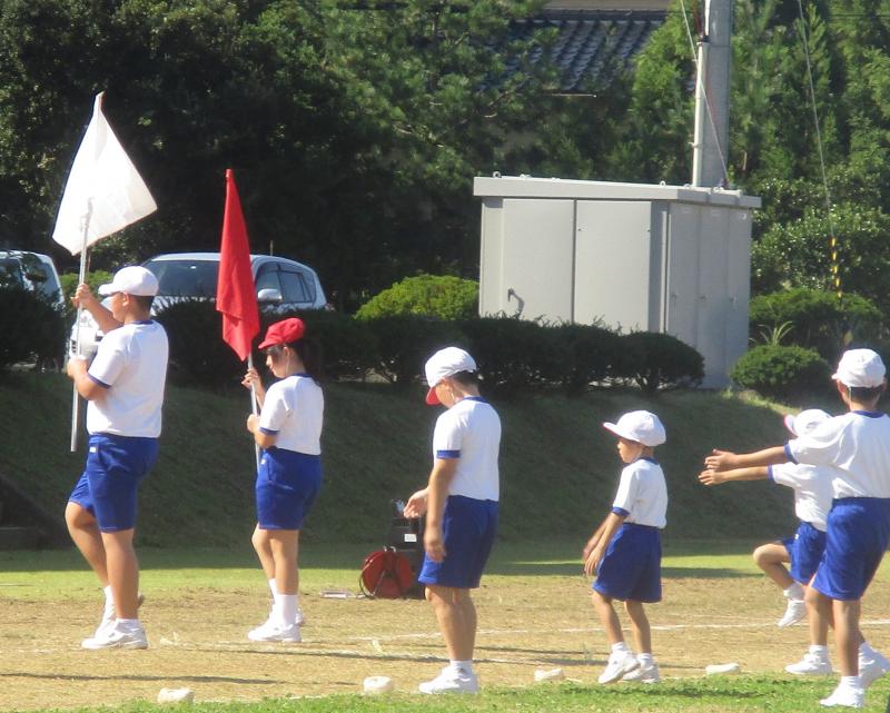 | 今年は、赤白2チームずつの、4チームで行います。青空のもと、心地よい風、気持ちよくできました。 | |