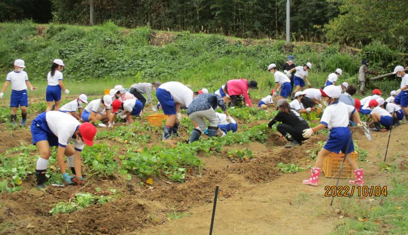 たくさんのサツマイモがとれ、みんな大喜びでした。体験からいい経験にかわるものと思います。 春より収穫のここまでお世話していただきました阿岸公民館長様をはじめ地域ボランティアの皆様に感謝いたします。 ありがとうございました。 |