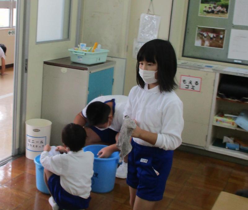 | 遊びに、手洗い、次の授業の準備等、学校のリズムに合わせて過ごしています。えらい! | ||