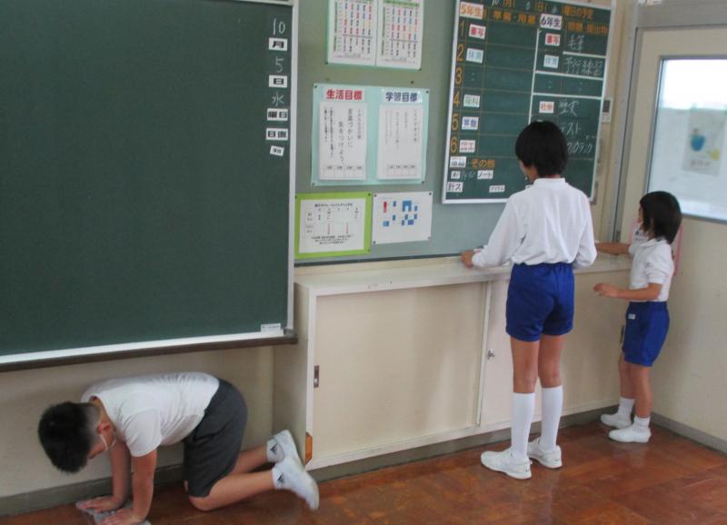 | 縦割り掃除だと、上級生も下級生も、いい刺激になってとてもいい場面です。 | |