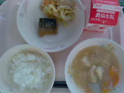 ~ごはん、さばみそ煮、キャベツのごま和え、けんちん汁、牛乳~