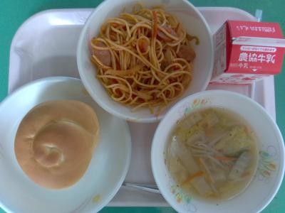 ~ミルクロール(減)、スパゲッティナポリタン、野菜スープ、牛乳~