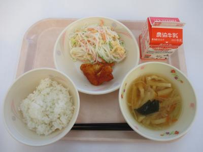 ~ごはん、ヤンニョムチキン、春雨サラダ、大根のみそ汁、牛乳~