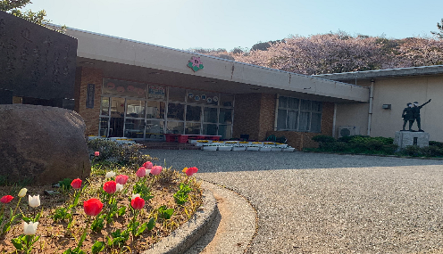朝日で校舎の影に一段と彩り鮮やかなチューリップにホッ。お世話する人に感謝できるのが西っ子のいいところ。 |