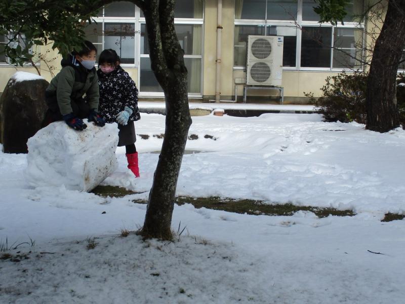 | 休み時間、中庭で雪遊びの時は、事故防止のため職員が見守っています。 | |