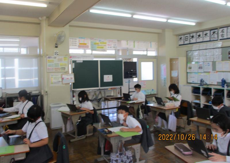 | 5年生、本校の教員が授業参観(ICTを活用しいい発表にキラっと) | |