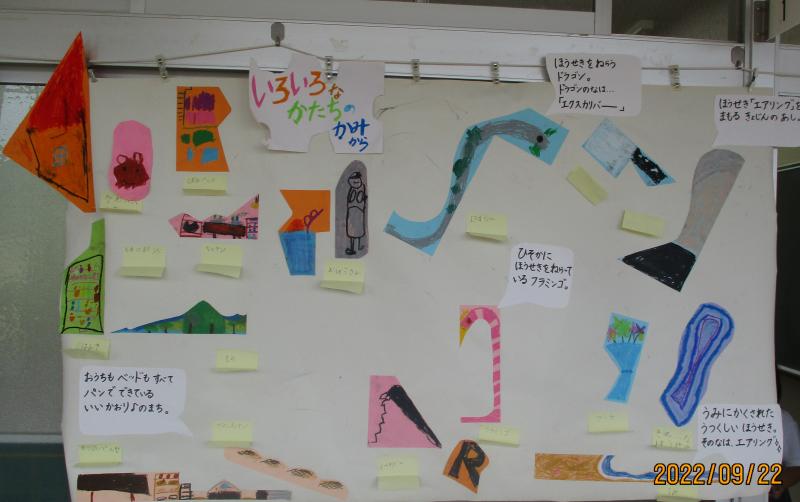 2年生の教室背面。思い出が詰められ卵に見えます。 |