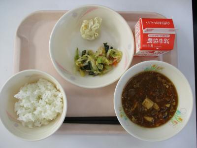 ~ごはん、コーンしゅうまい、野菜と海そうのナムル、マーボー豆腐、みかんゼリー~