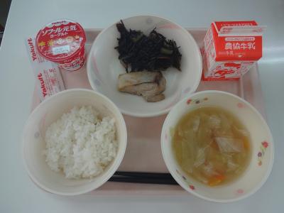 ~ごはん、ブリの西京焼き、ひじきの炒め煮、みそ汁、牛乳、ヨーグルト~