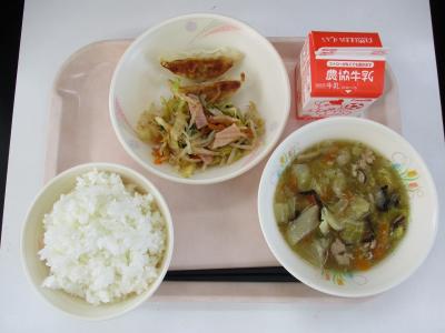 ~ごはん、焼きギョウザ、野菜のナムル、八宝菜、牛乳~