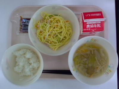 ~ごはん(減)、まぜまぜ冷やし中華、冷やし中華のタレ、肉団子スープ、牛乳~