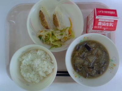 ~ごはん、焼きギョウザ、中華サラダ、マーボーなす、牛乳~