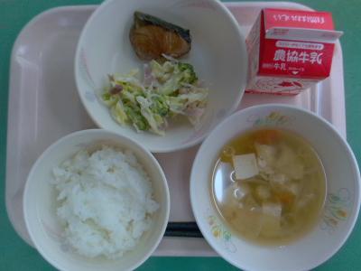 ~ごはん、能登産ぶりのみりん焼き、ビーンズサラダ、めった汁、牛乳~