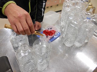 ひとつの卵をひとつのペットボトル(2リットル)に入れ、