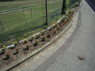 南志見公民館より、たくさんのお花をいただきました。児童全員で学校の花壇やプランターに植えました。マリーゴールドやサルビアなど鮮やかで美しいたくさんの花で学校がとても華やかになりました。これから毎日水やりをして大切に育てていきます。