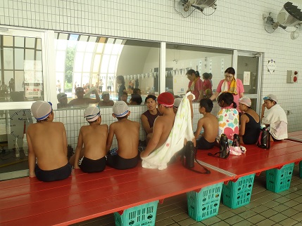 全力で水拭きレースです。子どもたちは、1年生から6年生まで協