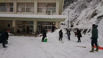 学校までの坂道は、地域の方が朝早くに除雪をして下さりました。