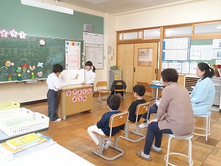 1年生の2人がなわとびや本の朗読を発表し、学校の中を案内しました。