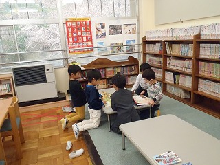 保育所の年長さんが小学校に来校し、1年生との交流会を行ないました。