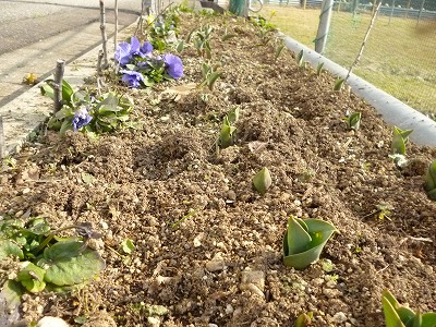 暖冬少雪で,学校周辺は春の訪れが