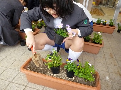 一人一プランターに4株ずつ 大きく育つといいね