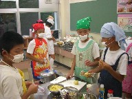メニューは,各グループごとに考えたのでそれぞれ違います。味噌汁を作ったグループがあったのですが,非常にワイルドな調理法でしたがおいしかったです。「○○だし」の実力を思い知りました。調味料の力おそるべし。